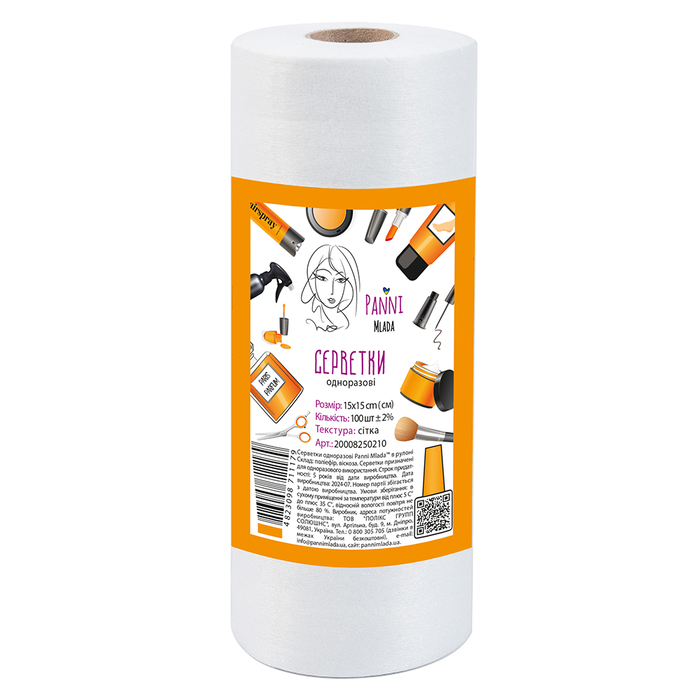 Салфетки в рулоне Panni Mlada 25х30см из спанлейса, сетка (100шт)
