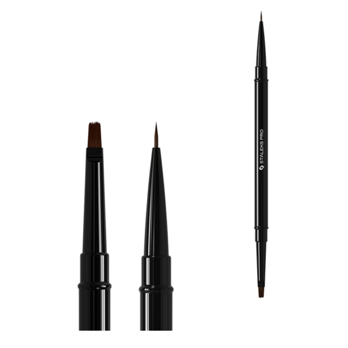 Staleks PRO EXPERT двусторонняя кисть (Сталекс) для геля 7 мм лайнер 7 мм NBE-01/04 — универсальный инструмент, который сочетает две рабочие стороны, мастер с ним может работать максимально точно при создании дизайнов и равномерном нанесении геля.