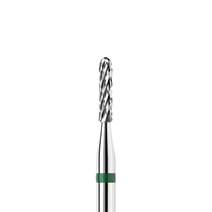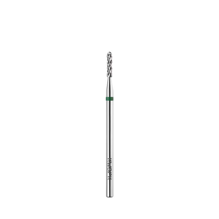 з зеленим абразивом призначена для делікатного випилювання та формування акуратних, правильних арок. Завдяки компактній формі інструмент забезпечує точну та контрольовану роботу у важкодоступних зонах — у зоні гіпоніхію та кутикули, зокрема при роботі з верхніми формами.