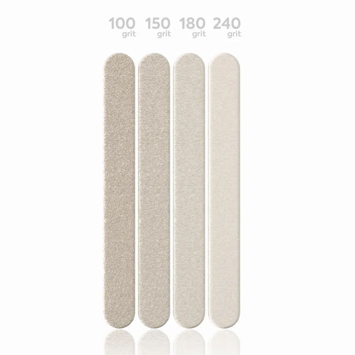 М'які, приємні, не обсипаються та не ранять шкіру. Безпечний відступ файлу від краю основи, захищає від порізів. Клей легко відклеюється навіть після стерилізації у сухожарі та не залишає слідів. Використання одноразових файлів дозволяє зробити салонний манікюр та педикюр абсолютно безпечними. Екологічний продукт.